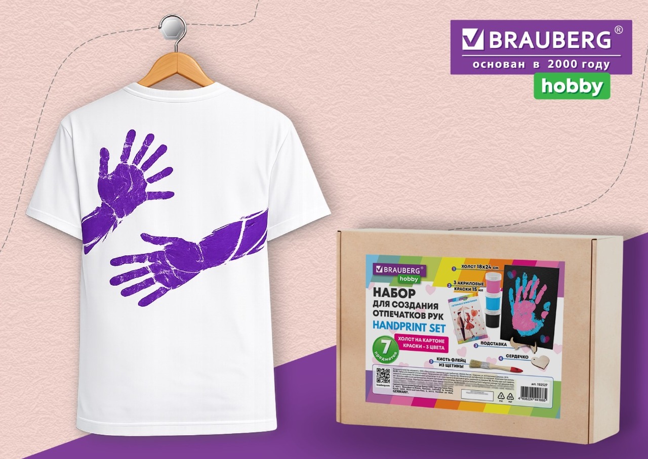 Отличным решением станут творческие наборы BRAUBERG HOBBY. Уже несколько лет в топе продаж держатся наборы для создания отпечатков рук. Главное преимущество – универсальность. Их разбирают и для вторых половинок, и для подруг, и для всей семьи. Важно донести ценность покупки: это не просто подарок, а время, проведённое вместе за процессом. И результат, который станет памятью.
