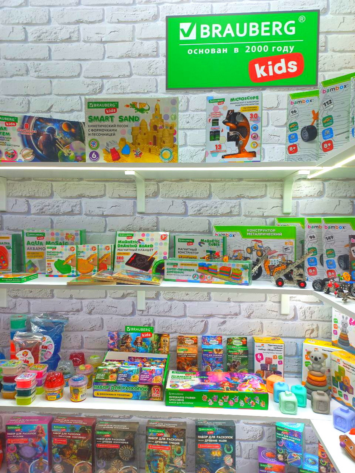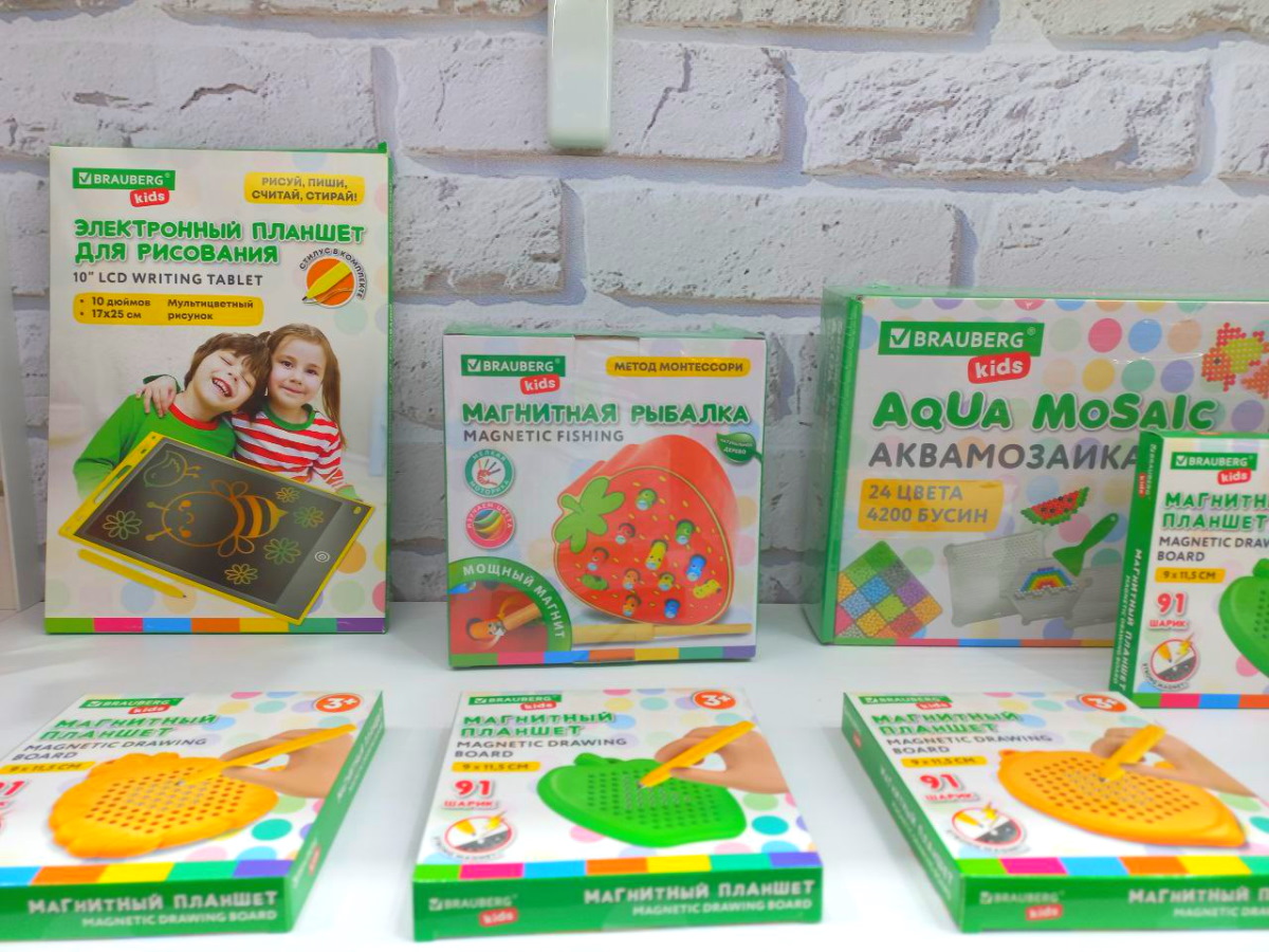 Отдельного внимания заслуживает секция BRAUBERG KIDS - настоящая сокровищница для детей и их родителей. Здесь нет скучной канцелярии. Здесь — инструменты для творчества, которые гарантируют мгновенный эмоциональный отклик. Наборы для раскопок, развивающие игры, горы пластилина, красок ...Товары, от которых у детишек горят глаза, а у старших появляется 30 минут свободного времени.