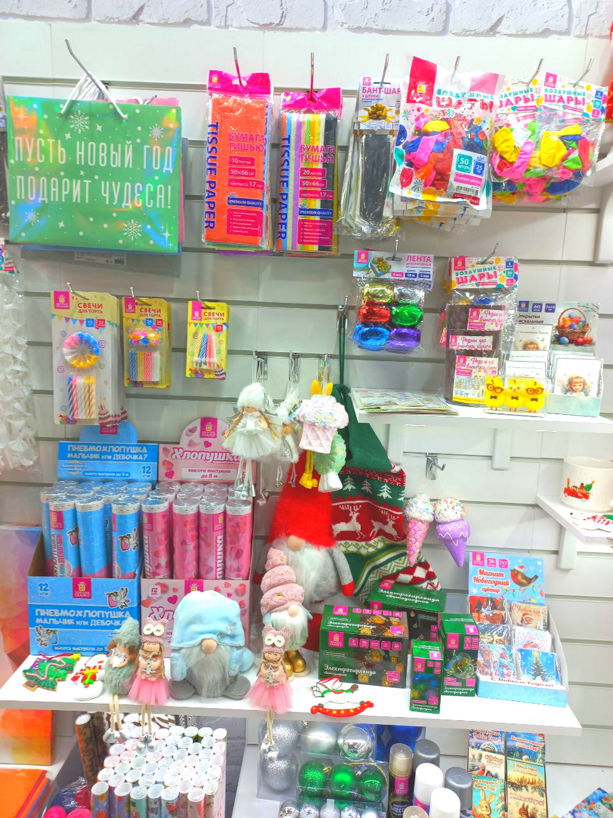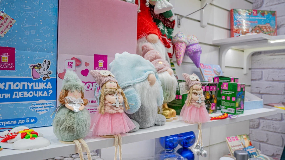 Стоит повернуть голову вправо— и навигатор настроения резко переключает стрелку. Ты попадаешь в «Золотую сказку». Здесь воздух будто бы звенит от нетерпения. Забавные интерьерные украшения, новогодние гирлянды и ёлочные шары, упаковочная бумага и хлопушки — это территория результата.