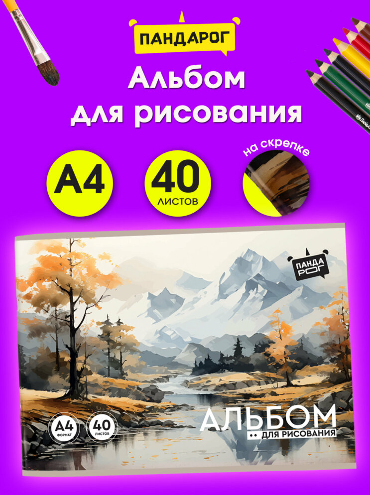 Альбом для рисования ПандаРог Пейзаж предназначен для создания творческих работ. Имеет красочную обложку из мелованного картона. Включает в себя 40 листов. Подходит для нанесения грифельных набросков и рисования красками. Широко используется в детских учебных заведениях. Яркий дизайн альбома поднимет творческое настроение маленького художника.