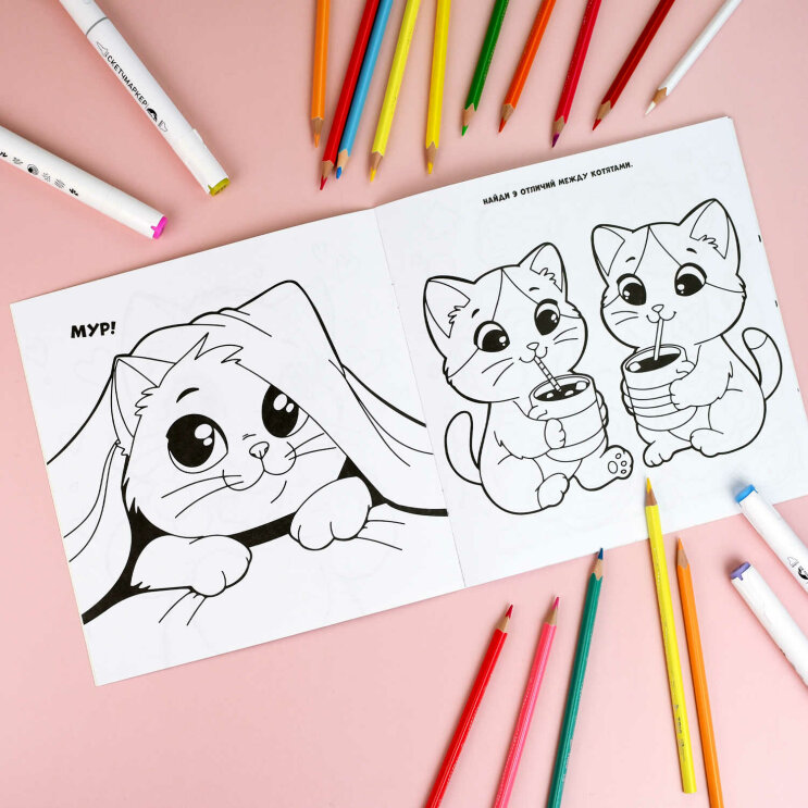 Милые котята мурлычут, играют и ждут, когда ребёнок добавит в их приключения ярких красок! Раскраска поможет вашему малышу потренировать усидчивость и развить моторику рук.
