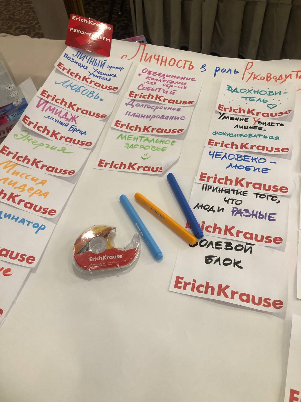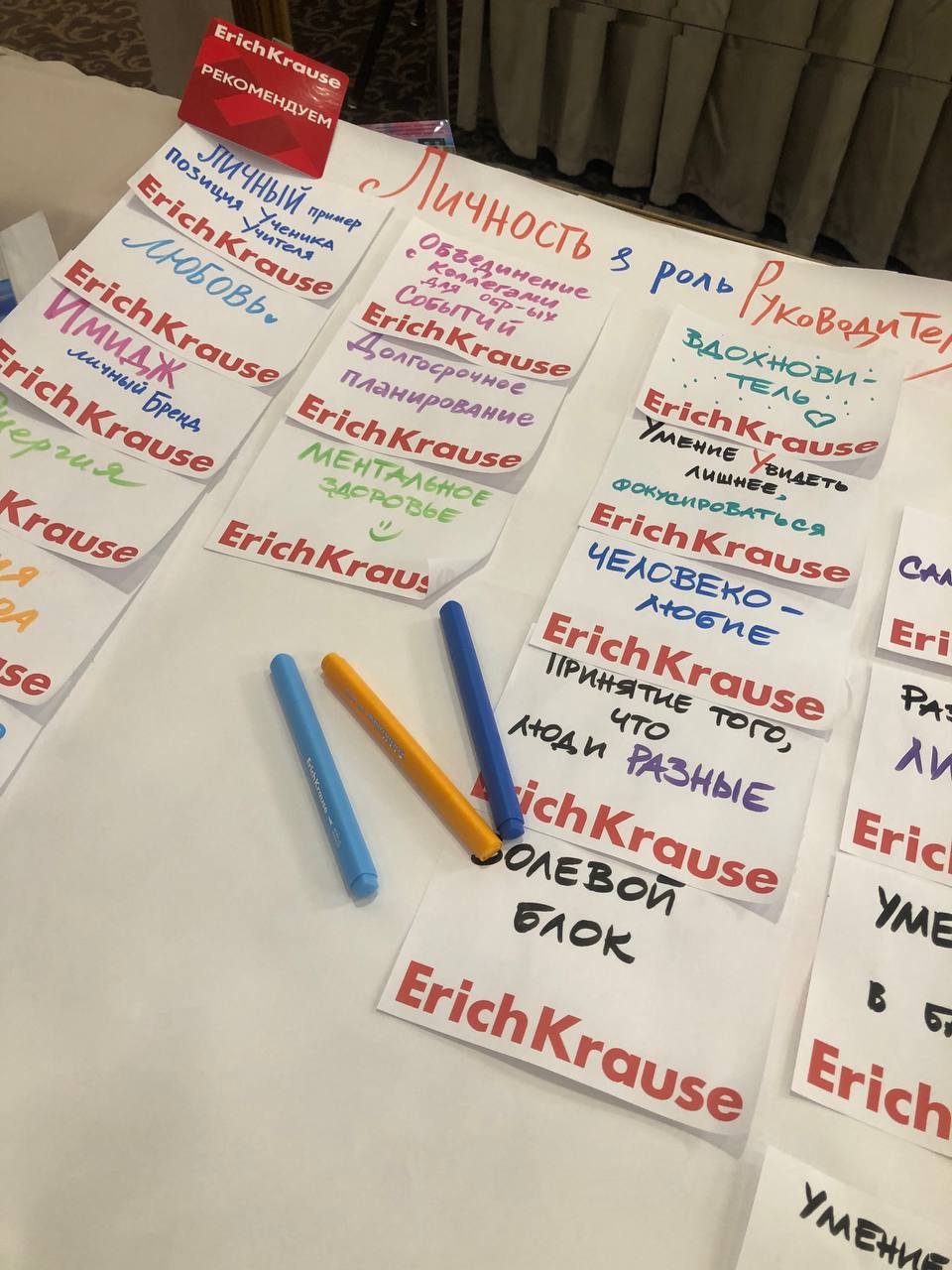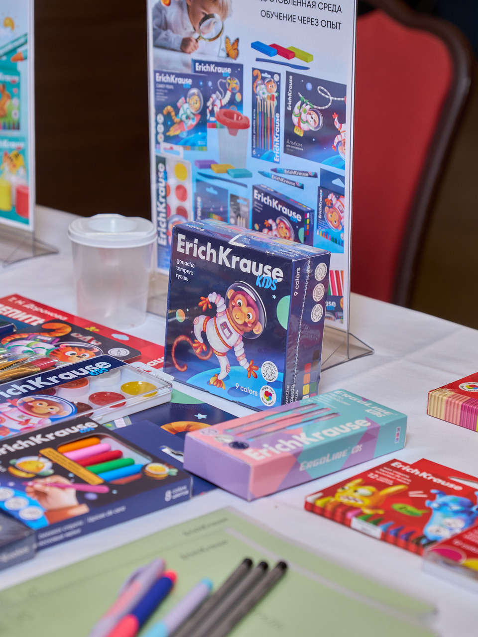 На пленарном заседании спикеры ErichKrause представили исследование на тему «Гибкое развитие: влияние пластичных материалов на речевое и когнитивное развитие детей». Сообщество Слёта оценило профессионализм и подход к раскрытию затрагиваемых проблем в докладе. Бренд порадовал членов форума призами: каждый получил набор канцтоваров, которые помогли в работе на протяжении Слёта. Специально для участников представили творческую продукцию, которая поможет школьникам и учителям в учебном процессе.