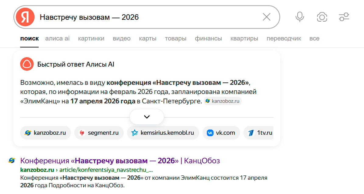 P.S. И, кстати, уже сейчас в поисковых системах «Яндекс» и Google этот мини-сайт располагается на первых строчках поисковой выдачи! Так что найти всю информацию о конференции «Навстречу вызовам — 2026» очень просто!