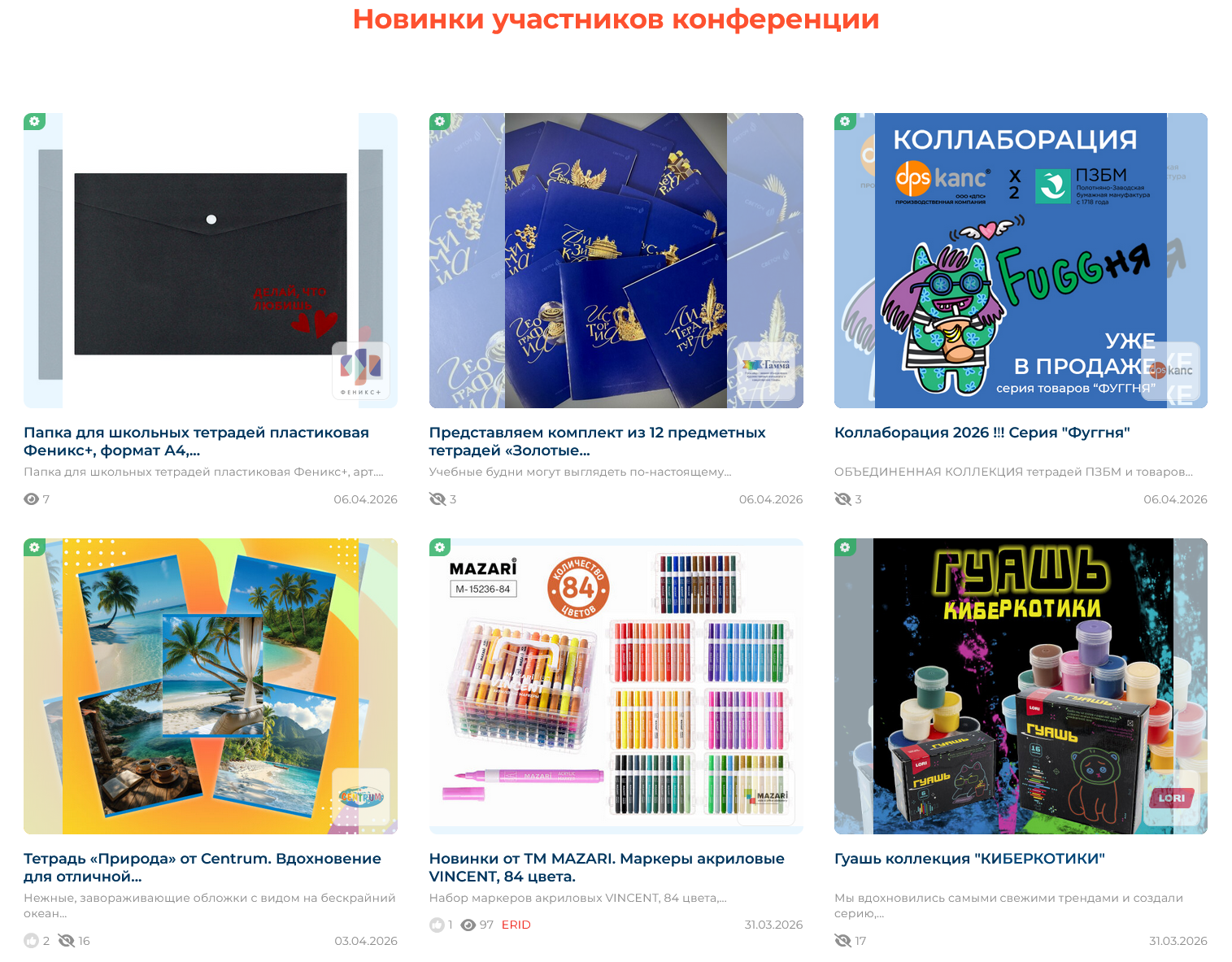 Свежий взгляд на продукцию: блок последних новинок компаний-участников, которые они недавно размещали на портале. Будьте в курсе трендов прямо перед встречей.