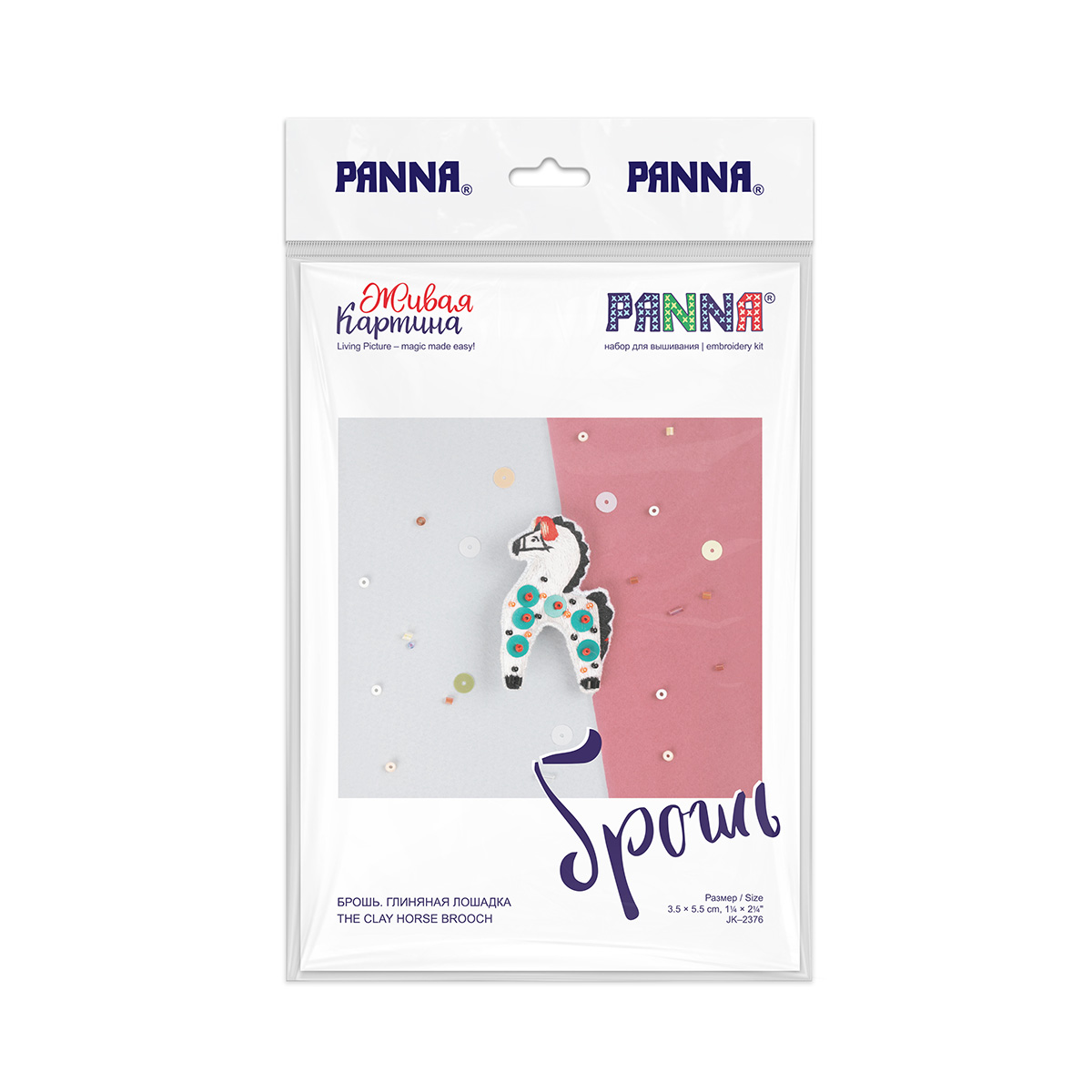 Брошь «Глиняная лошадка» (арт. JK-2376) — стилизация под узнаваемую дымковскую игрушку, яркий этнический мотив для поклонников родных традиций.