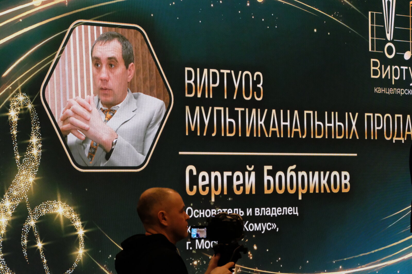 «Виртуоз МУЛЬТИКАНАЛЬНЫХ ПРОДАЖ» — Сергей Бобриков, основатель и владелец компании «Комус» (г. Москва). Признание за безупречное построение системы продаж, охватывающей все возможные каналы коммуникации с клиентом.
