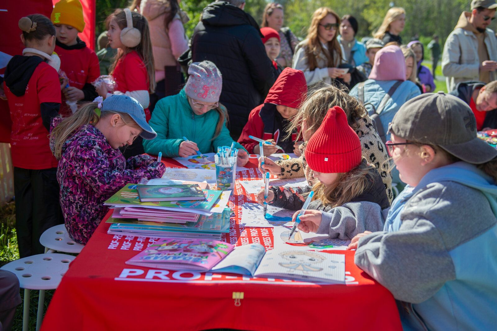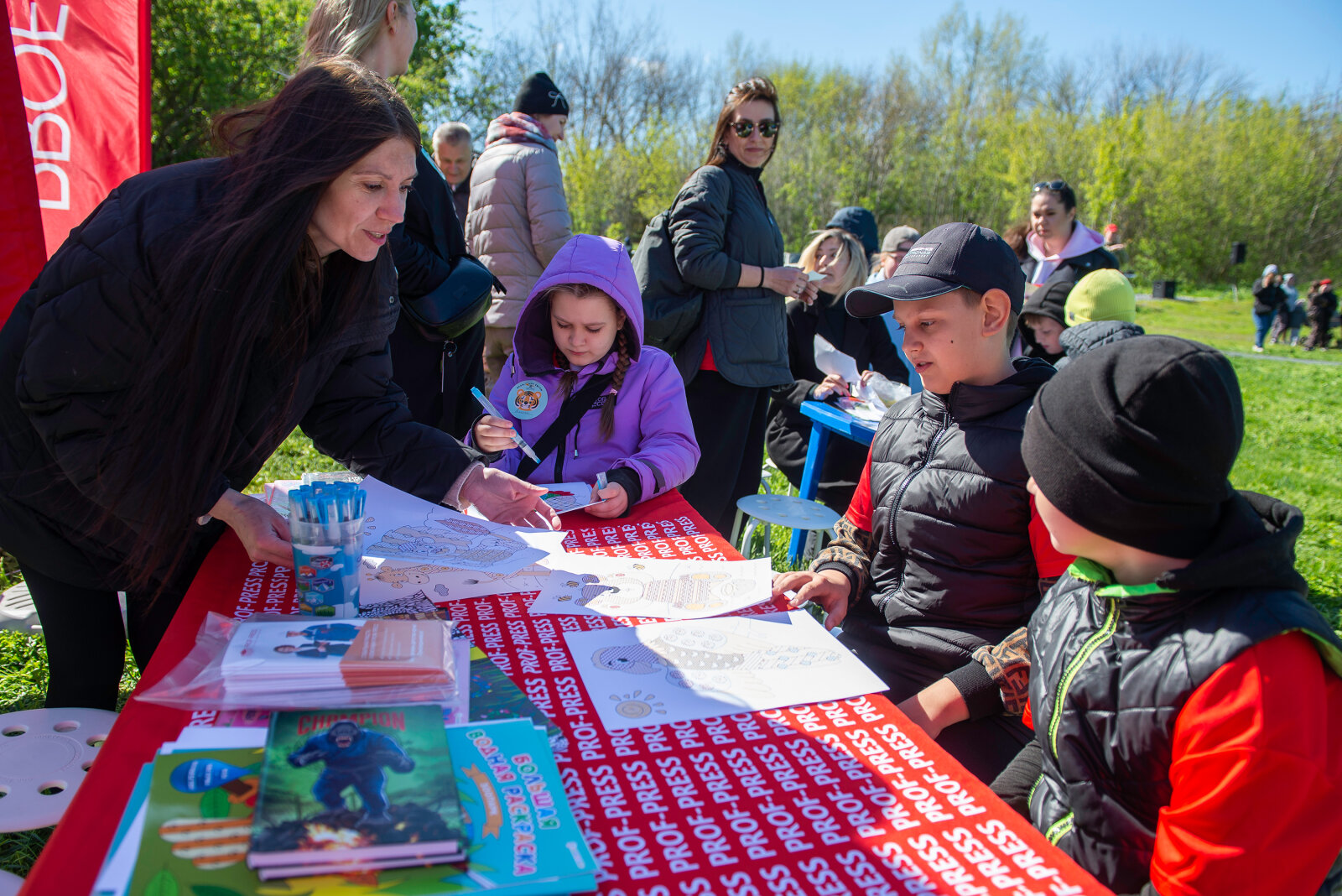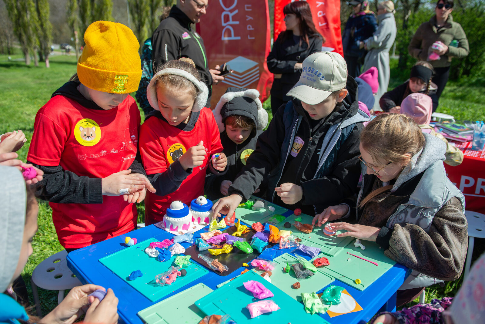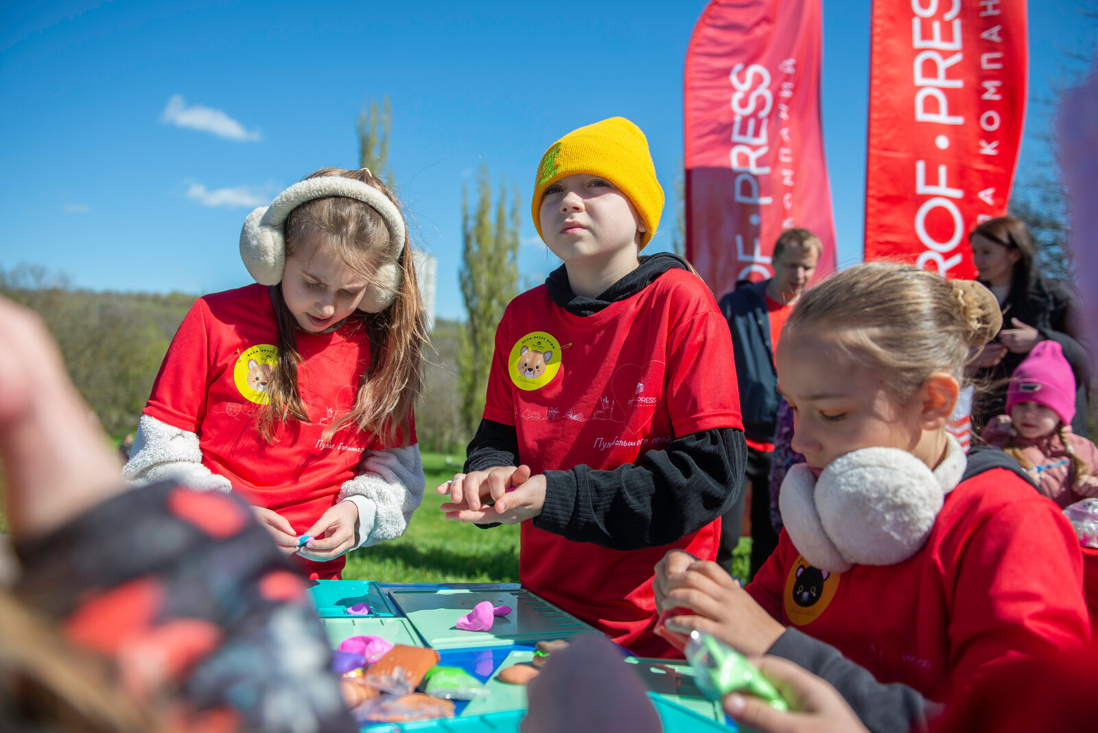 Под красными флагами "Проф-Пресс" собралась общая команда "Проф-Пресс" - всего около 200 "наших" людей. HR-команда курировала зону мастер-классов, где дети могли заниматься творческими занятиями - лепить и рисовать.
