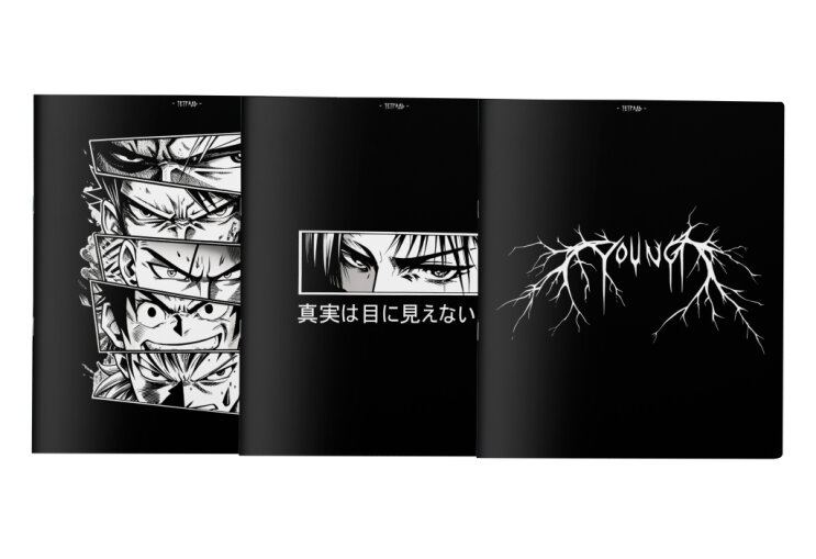 5 тетрадей в формате А5+, чёрных, как ночь перед битвой.