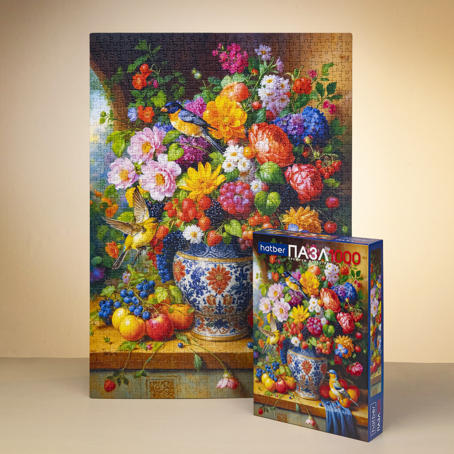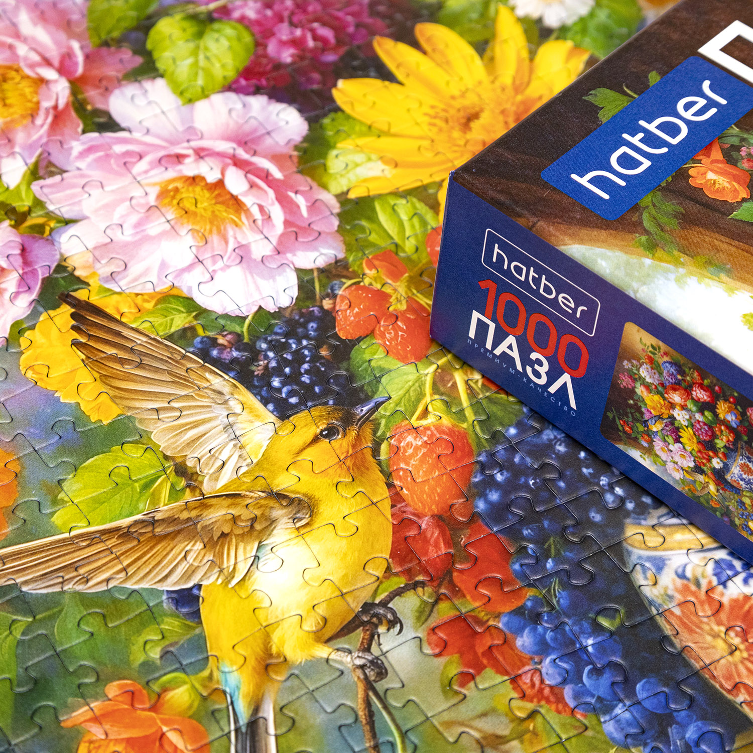 Пазл Hatber «Цветочный фейерверк» — это 1000 элементов насыщенного цветом натюрморта для тех, кто ценит классическую живопись.