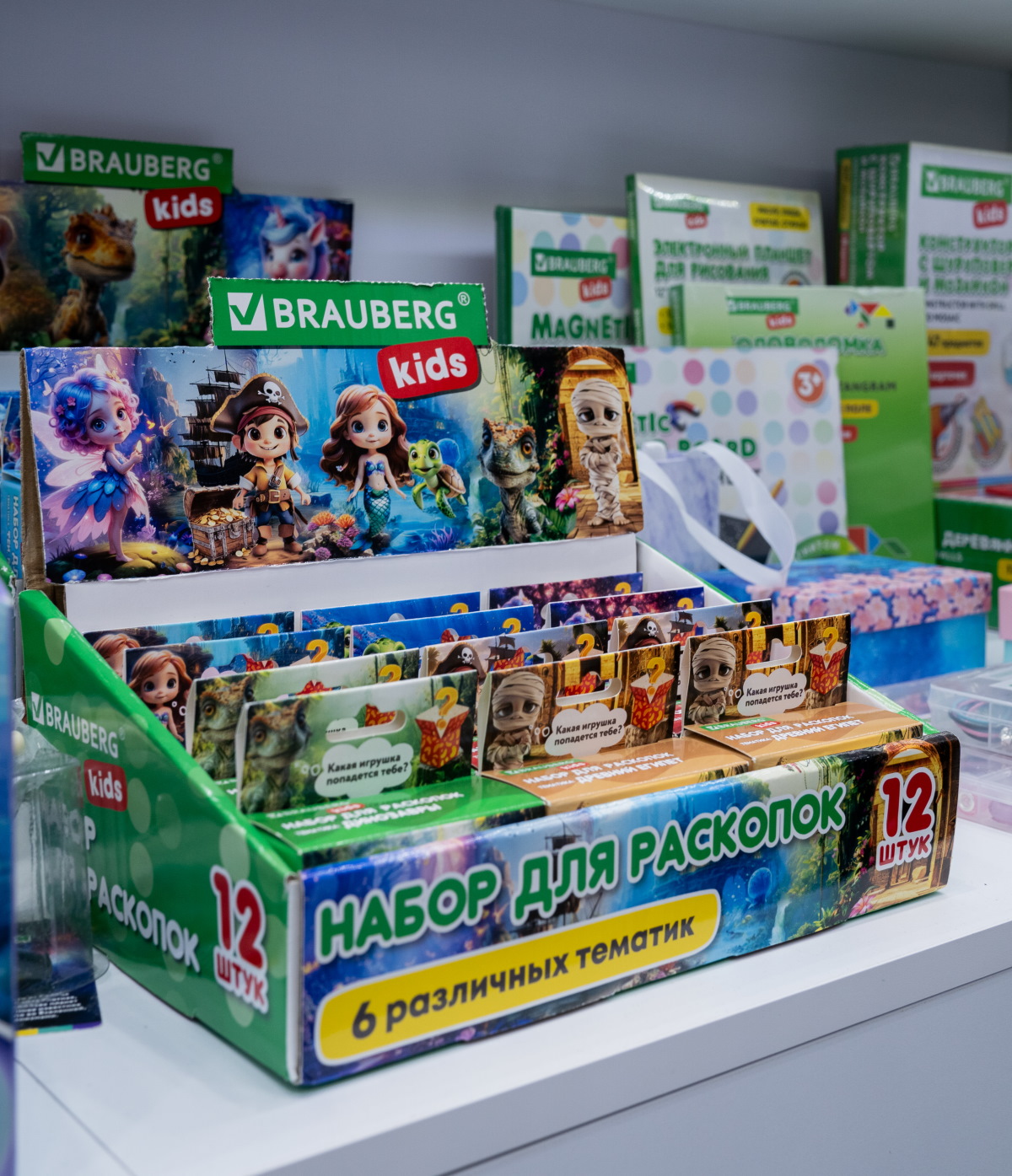 BRAUBERG KIDS (Брауберг Кидс): фундамент для развития. Товары для детского творчества и развития BRAUBERG KIDS подтвердили репутацию надежного партнера в становлении юных талантов. На выставке были представлены расширенные линейки наборов для рисования, лепки, конструирования и научных экспериментов, которые в игровой форме развивают моторику, логику и воображение.