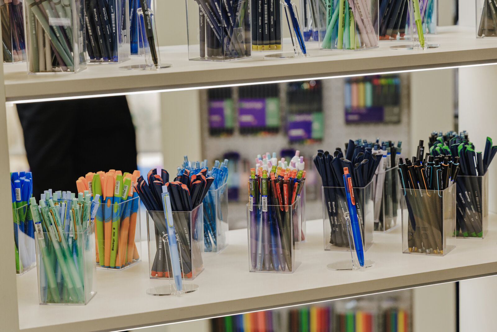 Space На стенде презентовали новые стираемые, шариковые и гелевые ручки с увеличенным ресурсом чернил, классические, трехгранные и шестигранные модели, а также ручки с игольчатым грипом и тренажёры для письма. Помимо пишущих принадлежностей, бренд продемонстрировал новинки в категории товаров для офиса — дыроколы, люверсы и степлеры. | |