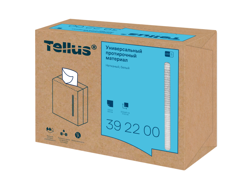 Новые протирочные материалы дополняют портфель бренда Tellus с осени 2025 года вместе с новой категорией качества бумажной продукции «баланс» и линейкой диспенсеров Tellus Wave Design®.