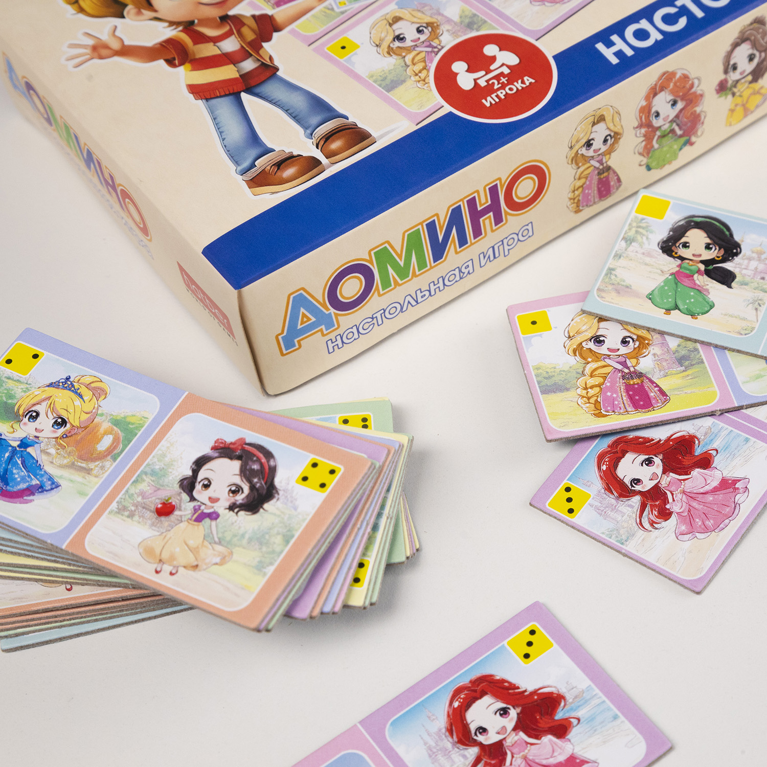 Дизайн домино «Принцессы»: каждая героиня отличается цветом платья, прической и образом, поэтому даже маленькому ребёнку легко находить пары по картинке. Фон и детали подобраны так, чтобы создавать ощущение сказки, но без перегрузки иллюстрации — домино остаётся чётким и читаемым.