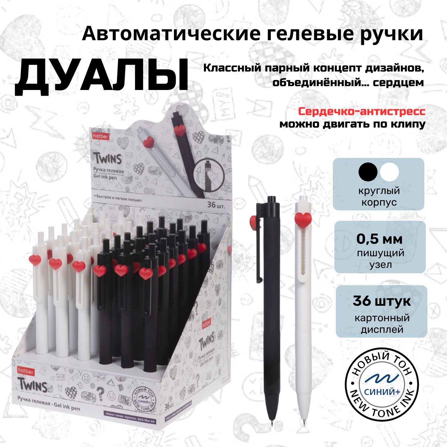 Автоматические гелевые ручки «Дуал» от Hatber - это классный парный концепт дизайнов, объединенный… сердцем.