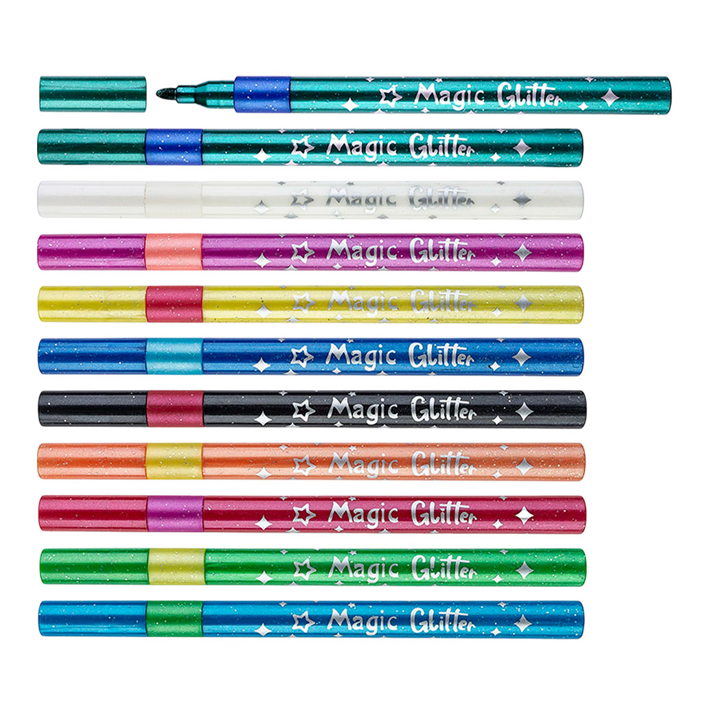 Фломастеры представлены в круглом пластиковом корпусе с рисунком. Цвет корпуса и колпачка соответствует цвету основных чернил. Также на каждом корпусе нанесен цвет, в которые превратятся чернила после использования белого фломастера.
