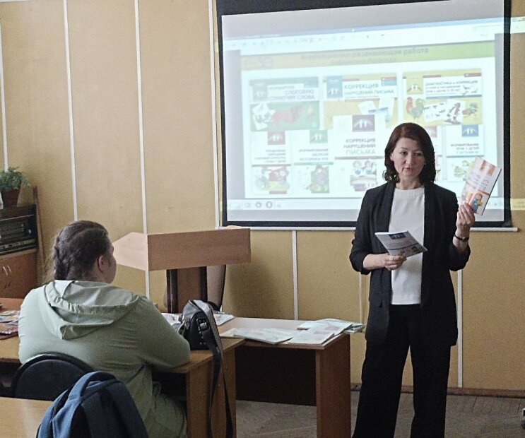 Методист издательства Лялина Наталья подробно представила будущим педагогам ассортимент учебно-методических пособий и наглядные комплекты для организации воспитательно-образовательного процесса в ДОО в соответствии с ФОП. Студенты получили возможность наглядно познакомиться с полным комплектом современных пособий, соответствующих требованиям ФГОС.